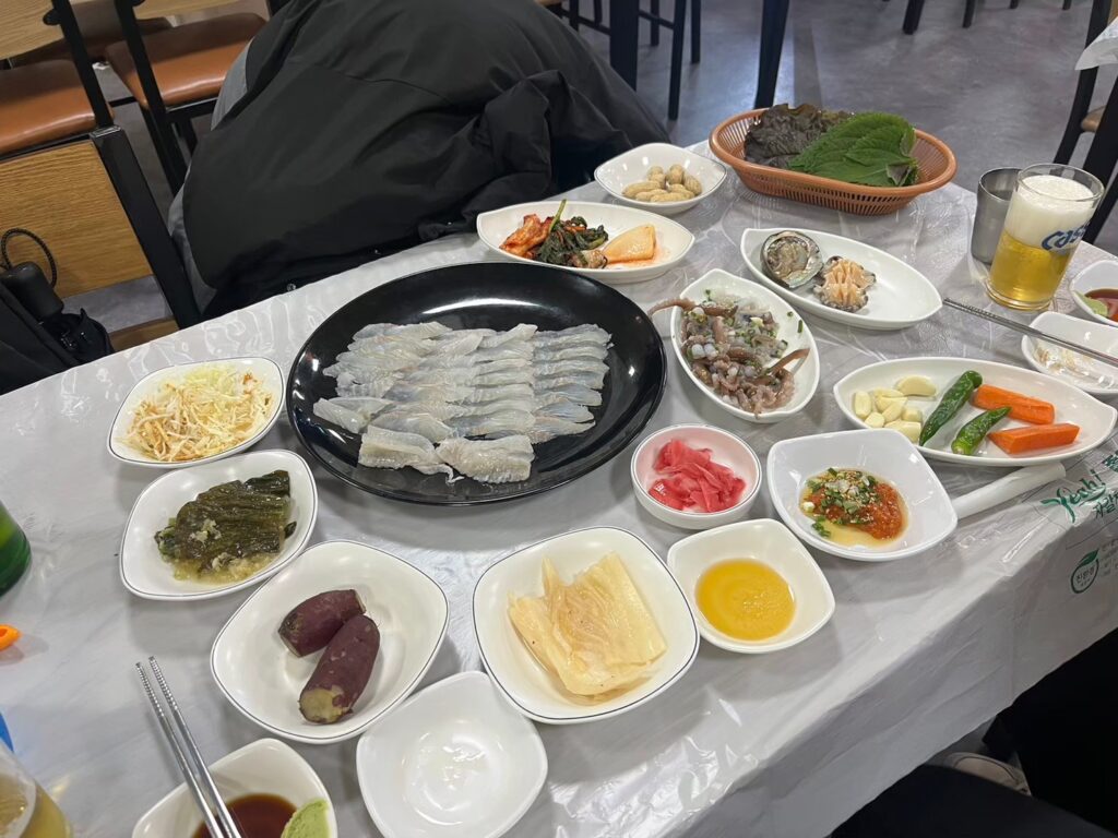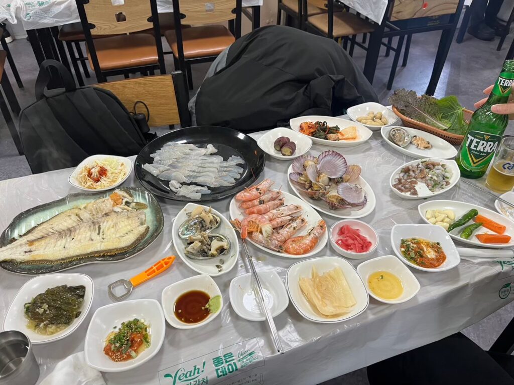 1階の水槽には、巨大なタコ、カニ、ヒラメ、そして見たこともない珍しい貝類がズラリ。 食べたいものを選んで値段を交渉したら、そのまま2階の食堂へ!さっきまで泳いでいた魚が、数分後には「フェ(お刺身)」や「メウンタン(辛い魚鍋)」になってテーブルに並ぶスピード感と鮮度は、まさに産地ならでは。筆者の経験則では、たいていの場合おばちゃんたちがよく分からない貝類をゴッソリサービスしてくれます(笑)